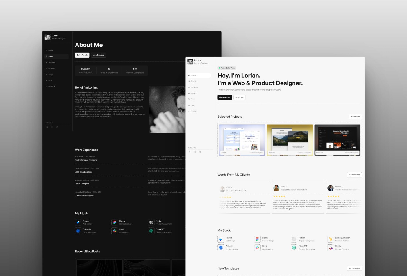 Kuro is a portfolio template for creators and designers to showcase their work, products, and personal brand. Kuro features a clean, minimal aesthetic with a sidebar that offers a seamless browsing experience.