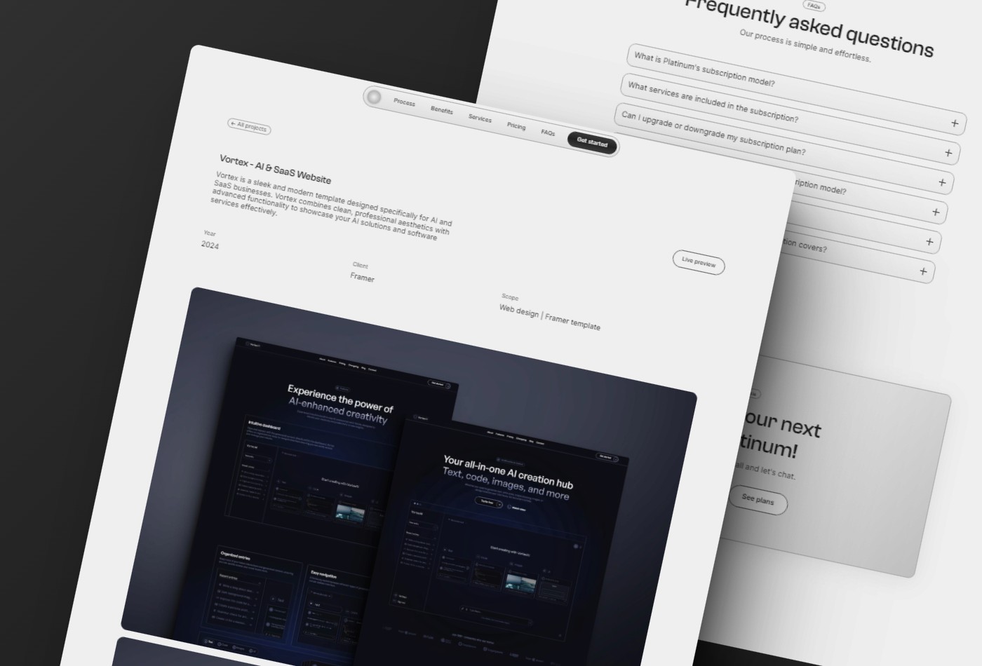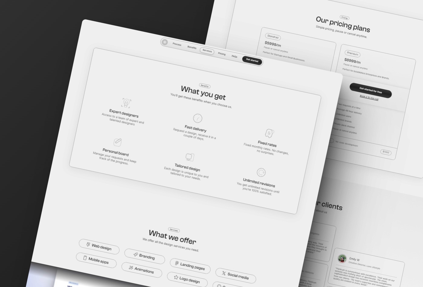 Platinum is a premium template for subscription-based design agencies offering productized services. It features a clean aesthetic and provides an exceptional user experience, making your agency stand out from the rest.