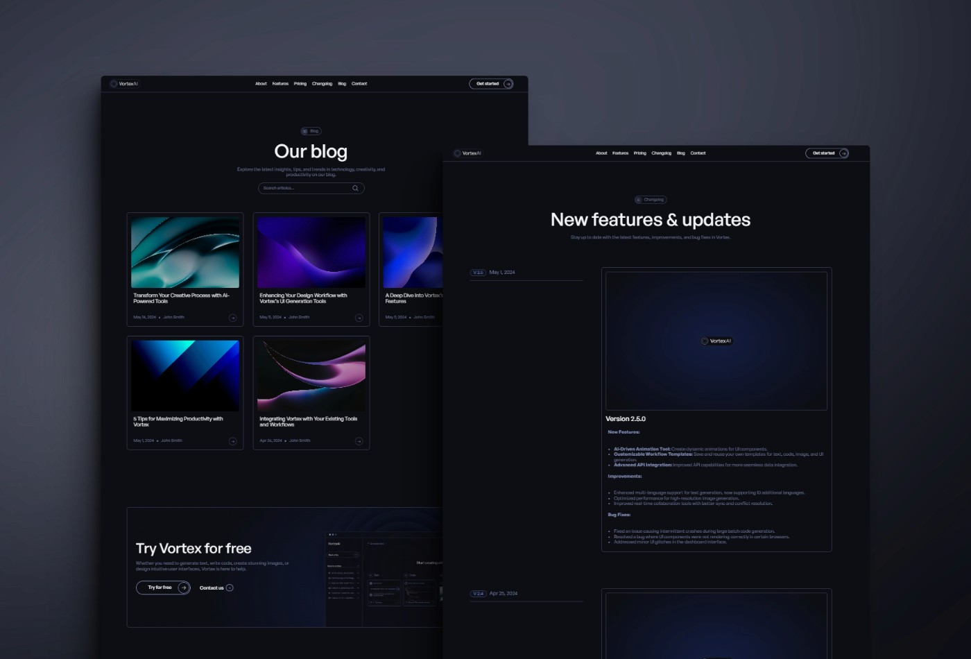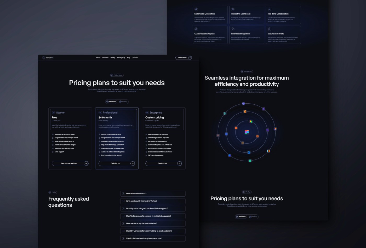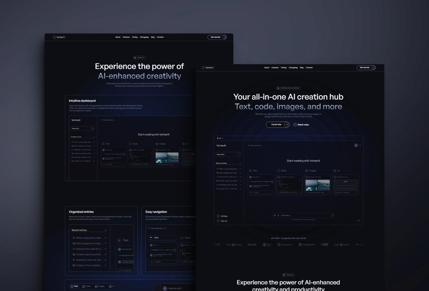 Perfect for startups and established companies alike, Vortex ensures your online presence reflects the cutting-edge innovation and sophistication of your AI and SaaS offerings.